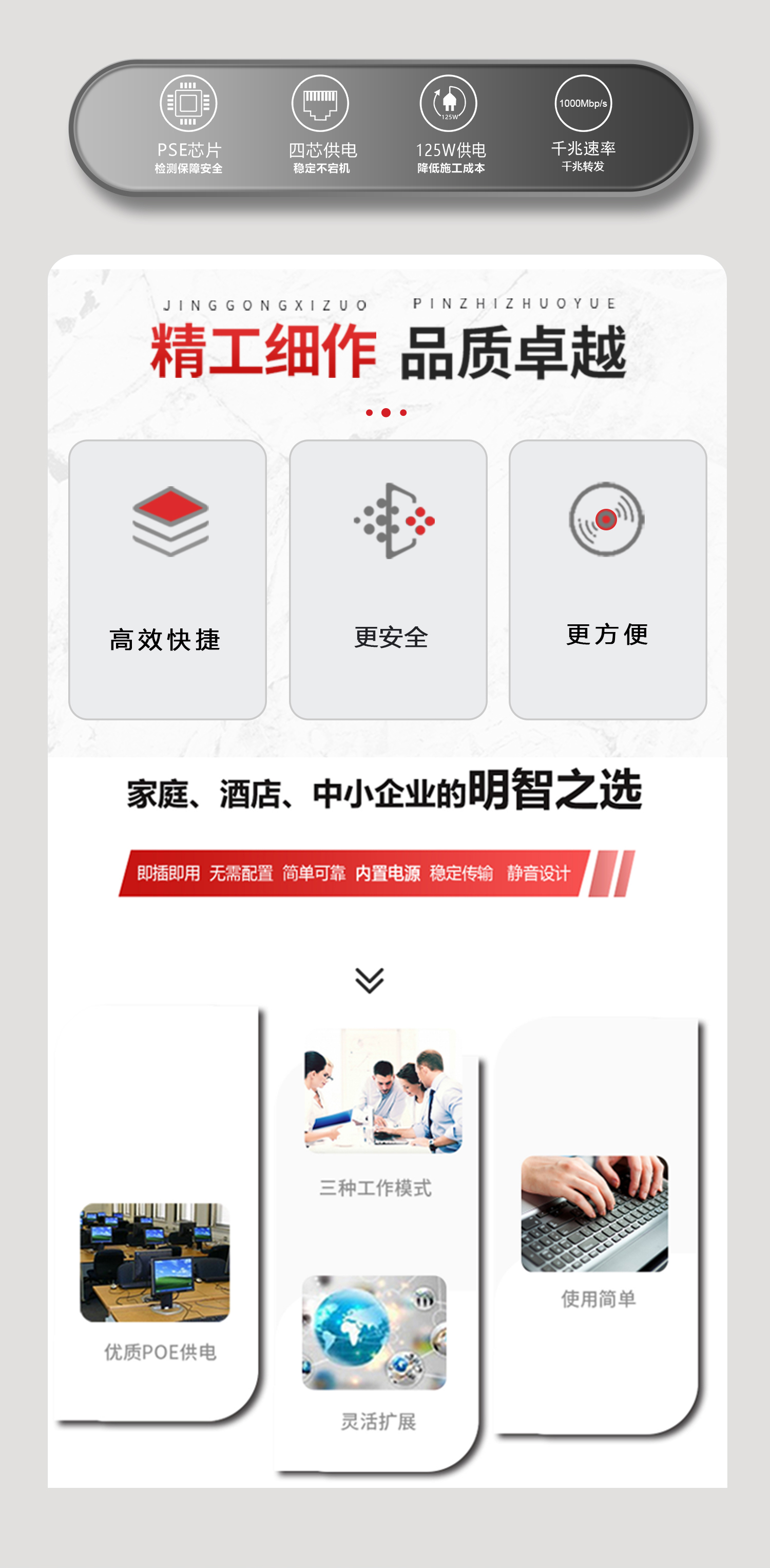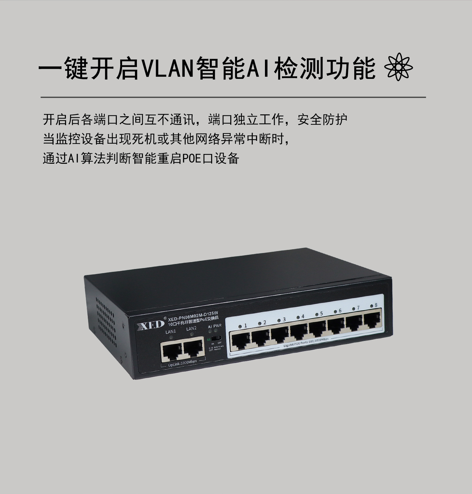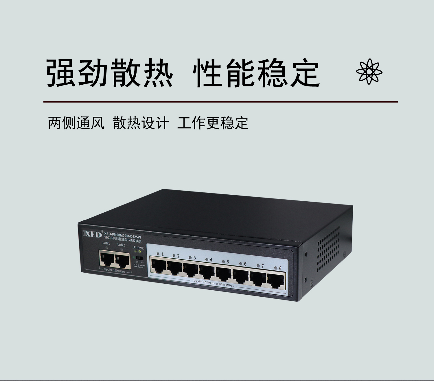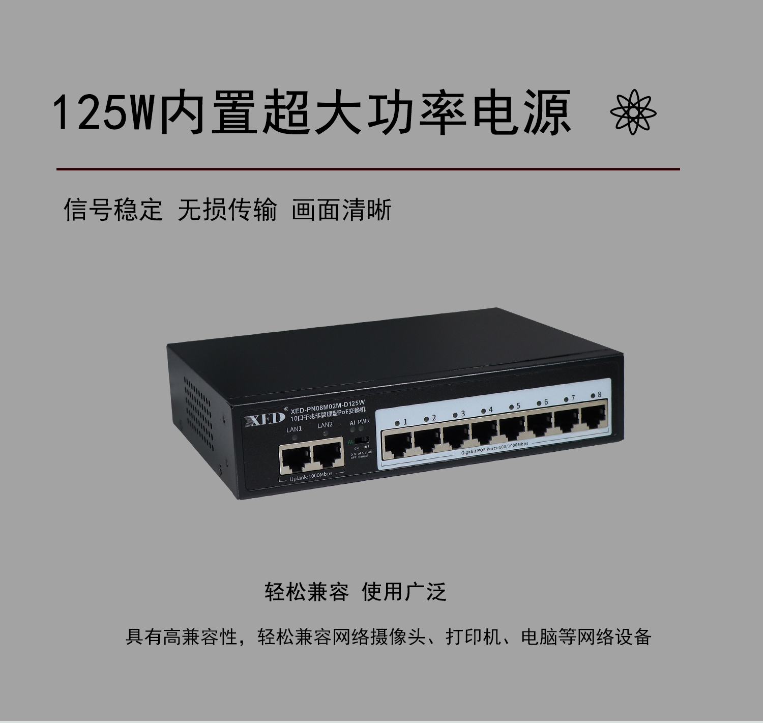 支持8口标准POE输出,满载功率125W;