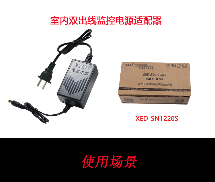 XED-SN1220S 双出线桌面式电源适配器,适用在小区、商场、超市、球馆、景区、学校、住宅等环境。